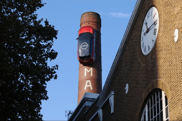 Nissan yeni aracını baca üzerinde yukarı tırmanıyormuş gibi sergiledi.