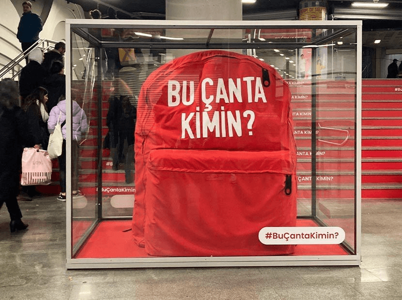TEV, İstanbul’un en işlek konumunda sergilediği devasa çanta ile öğrencilerin yaşadığı zorluklara gerilla pazarlamayla farkındalık getirdi.